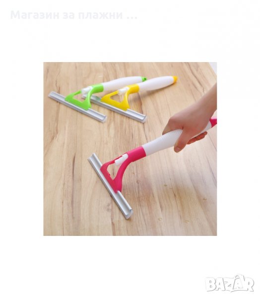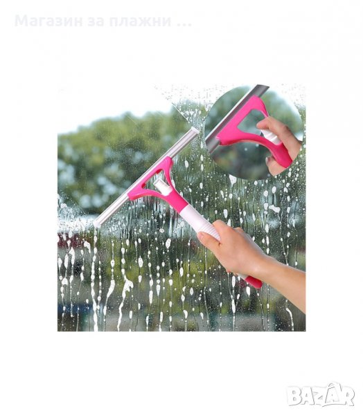 Две в едно чистачка за прозорци с вградена спрей бутилка за препарат за прозорци. Мултифункционален аксесоар за почистване на стъкла, душ кабини, витрини, плочки, автомобилни стъкла и други. Самата дръжка всъщност е бутилка за препарат или вода със спрей помпа.