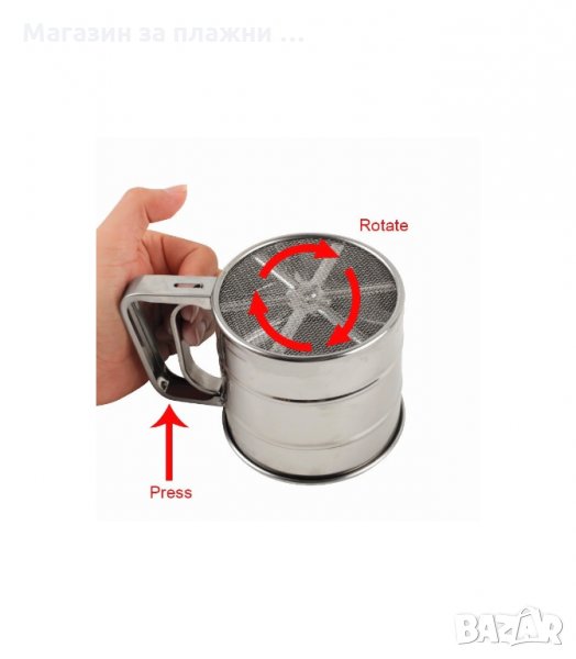 Изключително удобно сито за брашно и пудра захар тип чаша с въртящ се механизъм за пресяване. Страхотно улеснение за всяка домакиня. Само придърпвате вътрешната дръжка и с лекота успявате да пресеете брашно, пудра захар или какао, без да излиза продукта от съда и да цапате плота около него. Пресяването на брашното е важен момент от приготвянето на тестото, за да стане то по-пухкаво и да се получат перфектно любимите Ви питки, сладкиши, кифлички и сладки.