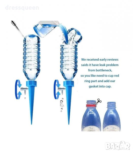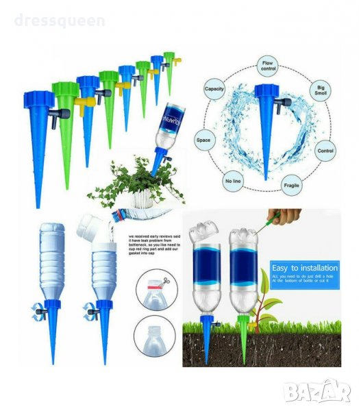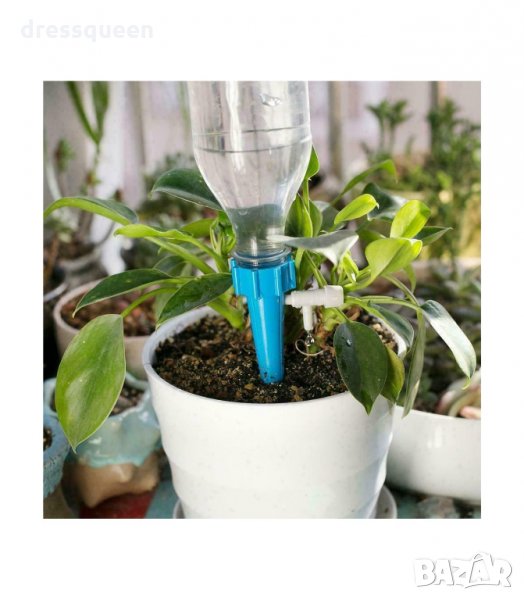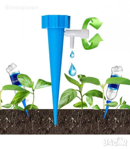 Поставете пластмасовата част вътре в почвата и поставете пълна бутилка вода върху пластмасовата част. Използвайте регулиращия клапан, за да контролирате количеството вода, което отива в почвата.
