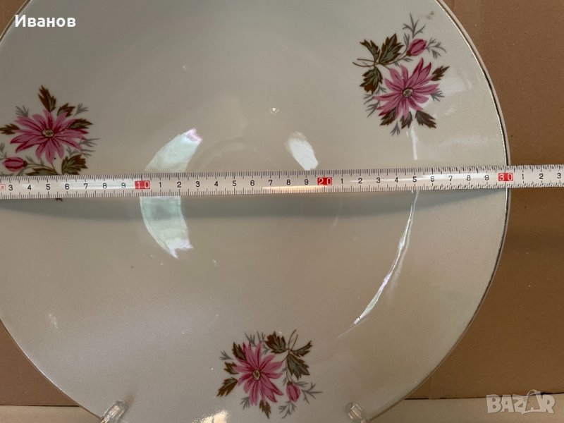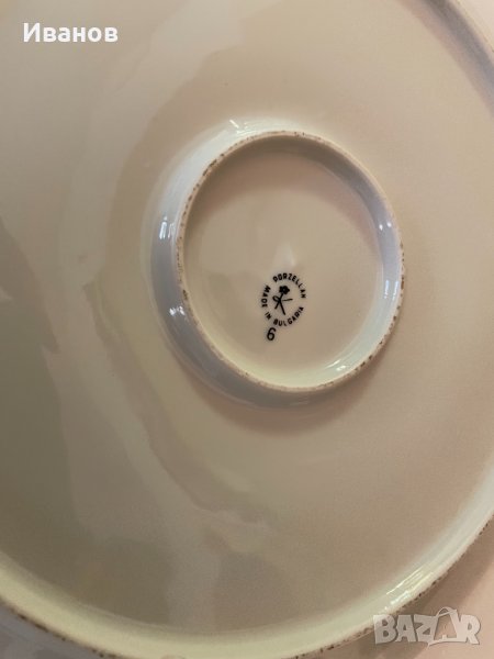 Забележки: 2-3 точици и малко петънце като протрито по порцелана до едното цвете. Леки протривания по златния кант.