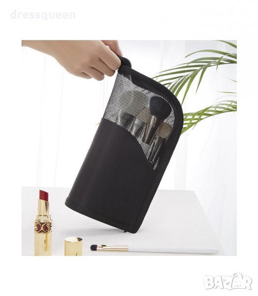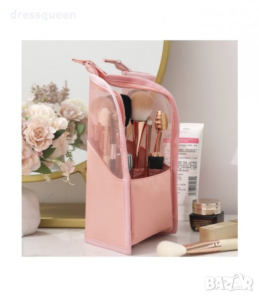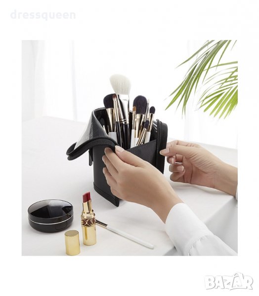 Изключително подходящ за козметика, принадлежности, лекарства или аксесоари. С малки вътрешни джобчета. Затваря се чрез цип. Превръща се във внастолна поставка за четки и моливи за грим.