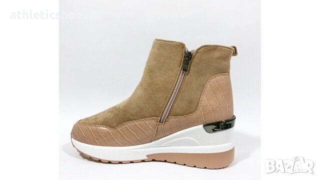Дамски боти на платформа от еко кожа и велур с цип -2103 → Обява 34237756