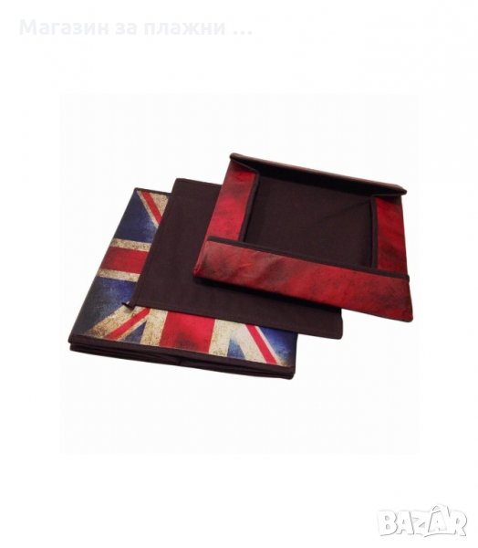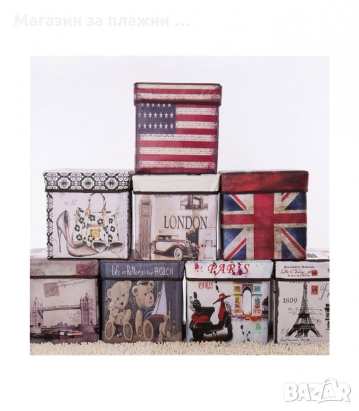 Сгъваема табуретка от технокожа с винтидж принт - контейнер за съхранение