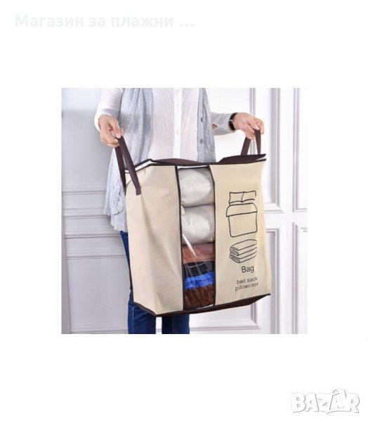 Органайзера е идеален както за съхранение на дрехи, спално бельо и завивки извън сезона им, така и за пренасянето им по време на ваканции и др.