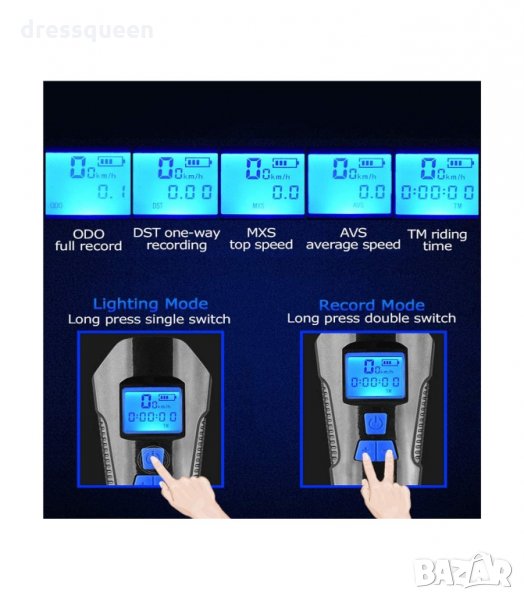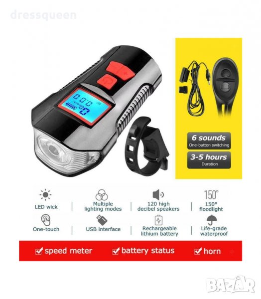 Фар за велосипед с LCD скоростомер и USB зареждане