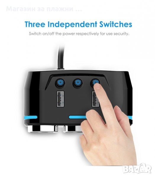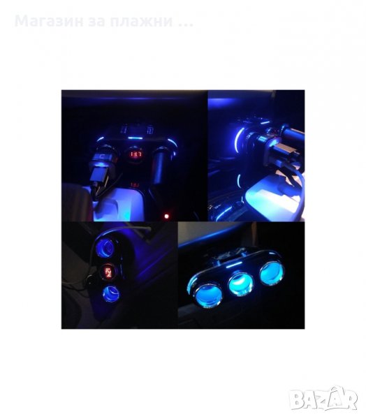 Троен разклонител на запалката + 2 USB изхода за зареждане на Таблети, Навигации, Телефони и игри