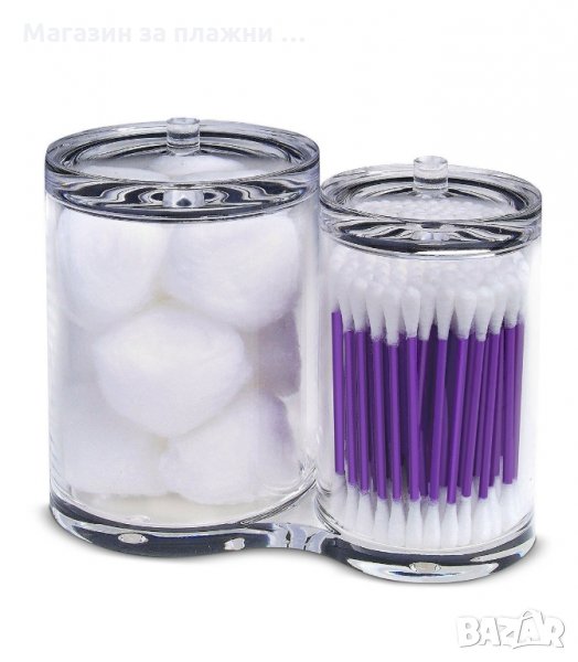 Органайзерът за памучни тампони и памучни дискове не може да липсва в банята Ви! Две различни отделения, свързани помежду си с много удобни и практични капачета за съхранение на памучни тампони и памучни дискове.