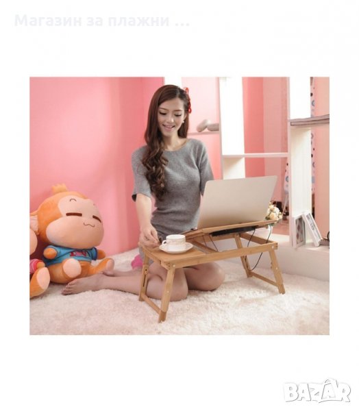 Голяма бамбукова маса за лаптоп с охладители