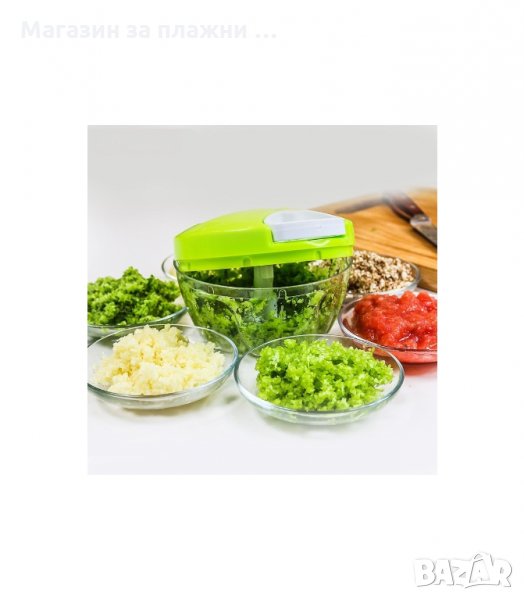Режете бързо и лесно с новия Speedy Chopper. Незаменим помощник във всяка кухня! С него режете всякакви зеленчуци, плодове, ядки и дори кълцате на месо. Често ли Ви се случва да имате нужда от малко количество нарязани или смлени плодове, зеленчуци, ядки или месо, но да не ви се цапат по-големите кухненски уреди предназначени за това? На помощ идва Speedy Chopper. С него режете, кълцате и дробите бързо и лесно. Измива се за секунди. Няма излишни части за досадно сглобяване и разглобяване.