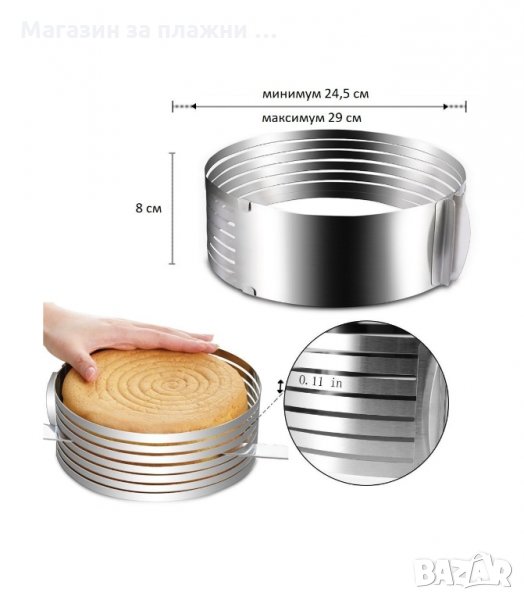 Един от най-лесните начини за разрязване на тортен блат е използването на този регулируем ринг.