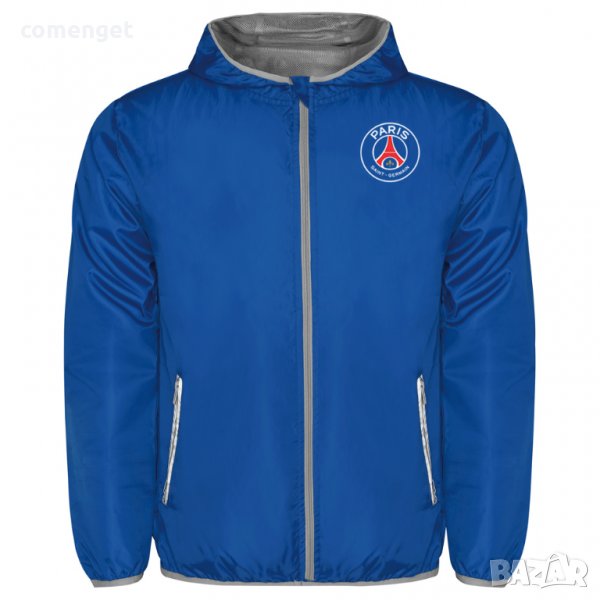 Влаго и ветро устойчиво яке с качулка с PSG PARIS / ПСЖ принт, перфектно за дъжд и вятър. 100 % полиестер.