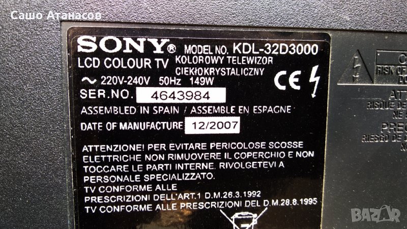 SONY KDL-32D3000 със счупена матрица ,APS-229 G1H ,1-873-000-11 ,324046WHC6LV2.2 ,1-872-989-11