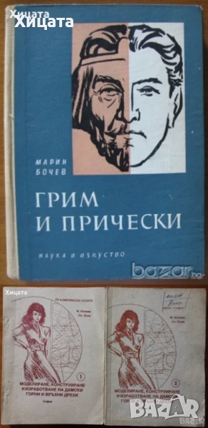 Грим и прически,Марин Бочев,Наука и изкуство,1960г.296стр. - 60лв Моделиране,конструиране и изработване на дамски горни и връхни дрехи.Част 1-2 Ръководство за присъствени курсове в две части,Маргарита Илиева,Пламен Янов,ПУ "Комплексни услуги",1986г.394стр. - 60лв Козметика за всички възрасти,Надежда Вецова,Никола Златков,Любимекс,1993г.192стр. - 60лв