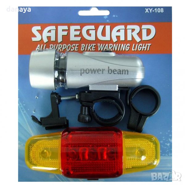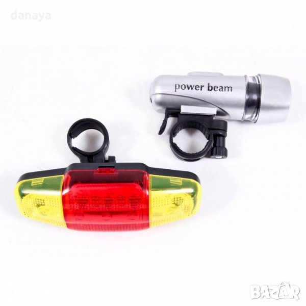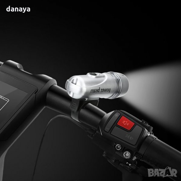 – Предна светлина: Фар фенер за колело – 5 ярки бели светодиода – механизъм за закрепване, който е включен в комплекта. 3 режима на светене.