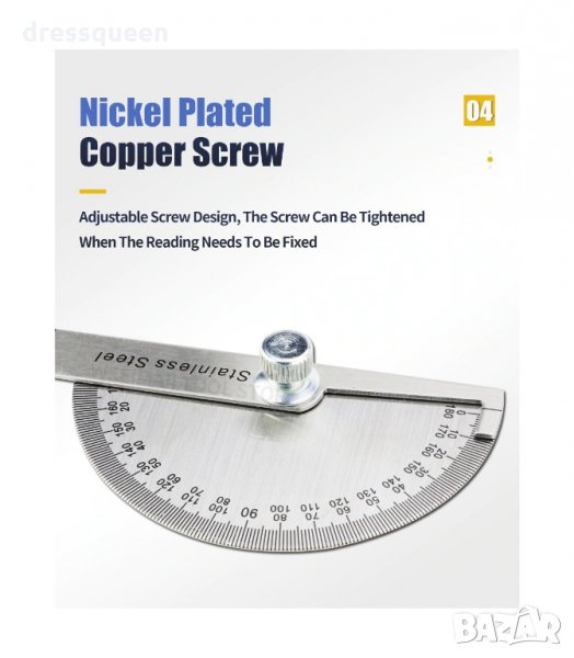 Транспортир, изработен от високовъглеродна стомана с обхват на измерване 180 °.