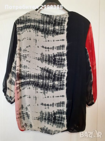 Дамска туника от шифон с подплата. Обличана е два пъти и се намира в отлично състояние, ръкавът е 3/4. Размерът е между 2 и 3ХЛ.