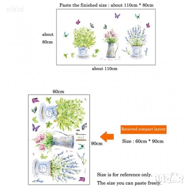 чисто нов стикер, самозалепващ се, при желание лесно и без нарушаване на стена/боя се отлепва с лекота.