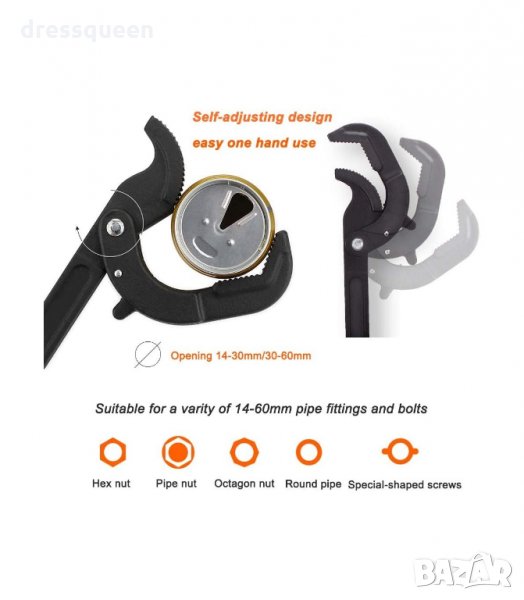 Може да се разтяга и разхлабва всички видове болтове и гайки,независимо от размера. Те са с ергономичен дизайн и неплъзгаща се спирална резба за по-удобно използване. Можете също да използвате функцията за самозаключване, която позволява още по-голяма гъвкавост.