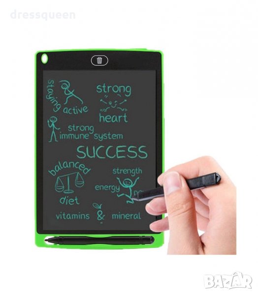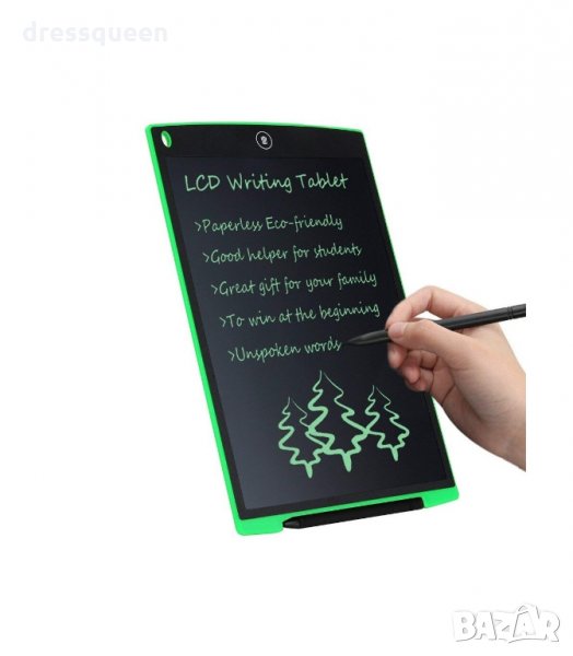Дъската е с 12 инча размер на екрана и създава изображение чрез специалната писалка в комплекта чрез натиск. Предвидено е специално отделение за писалката. Всяко докосване кара екрана да създаде изображение / надпис – всичко, което създайте върху него. Горната част има дръжка, която ще ви позволи удобно да съхранявате стилуса, без да се притеснявате да се изгубите.