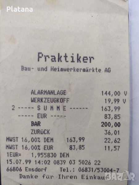 Стара неупотребявана, качествена авто-аларма,купувана от Германия през далечната 1999 година за 144 дойче марки,налична касова бележка.