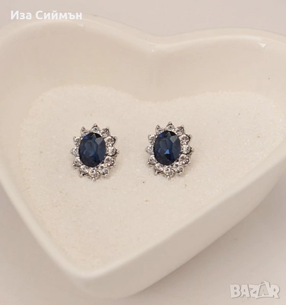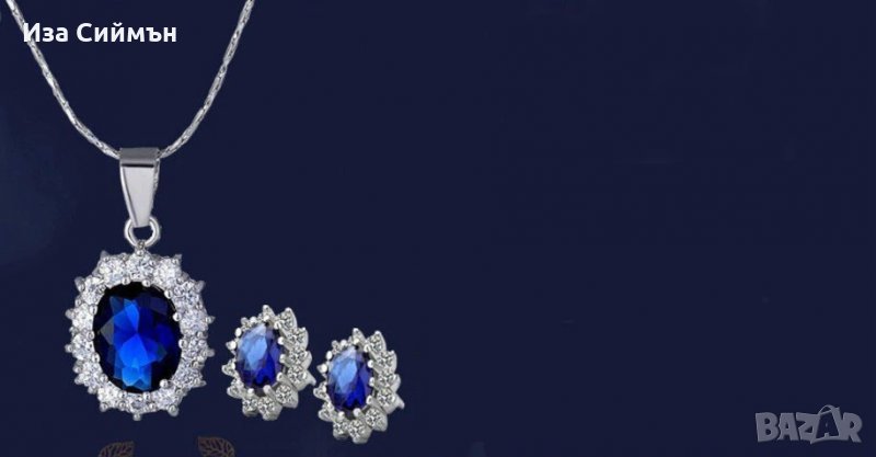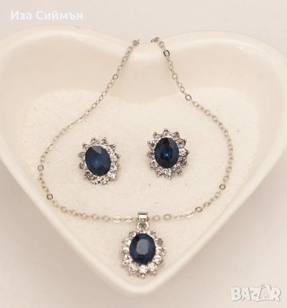 Комплект обици и колие, медицинска стомана, сапфири и кристали → Обява 34254085