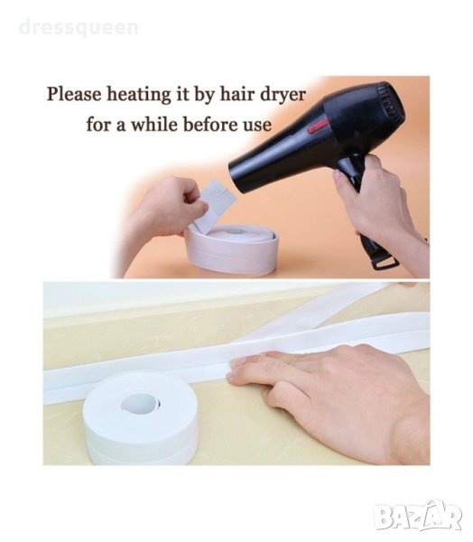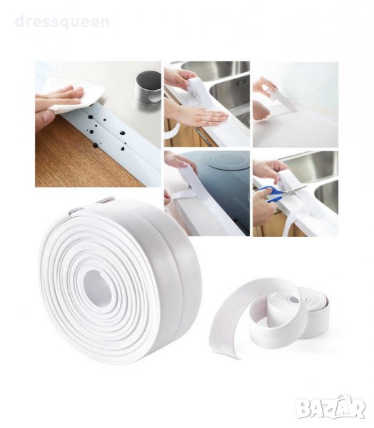 Уплътнителна лента за фуги. Водоустойчива самозалепваща лента за баня, мивка, вана и други - Размери - 3.8 см широка и 3.2 метра