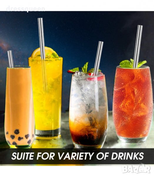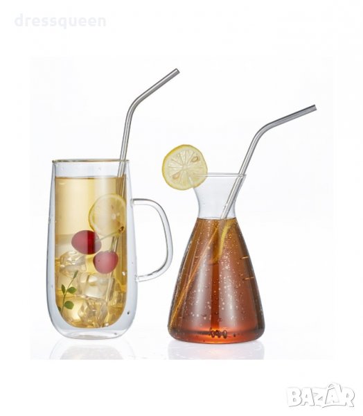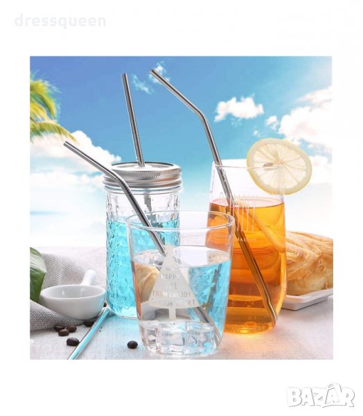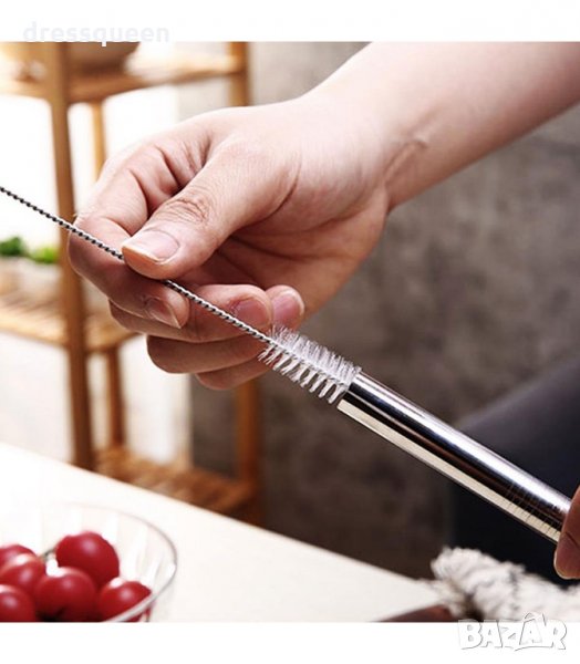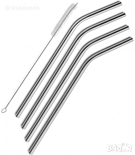 Метални сламки за пиене 4 бр. или 12 в комплект с четчица за почистване