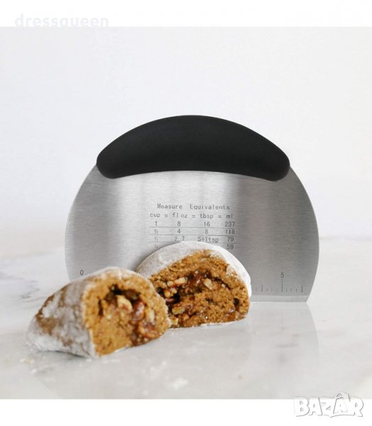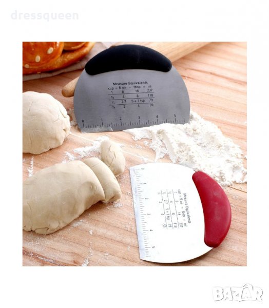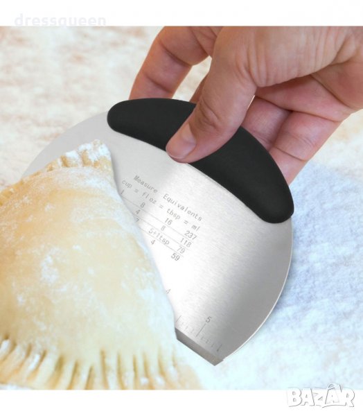 Удобен и практичен нож за тесто от неръждаема стомана, със здрава, нехлъзгаща се ръкохватка. Аксесоар, необходим за всяка кухня - с него лесно, бързо и точно режете тесто и тестени изделия. За по-голямао удобство, ножът е разграфен с мерни единици и сантиметри.