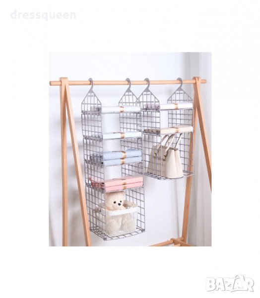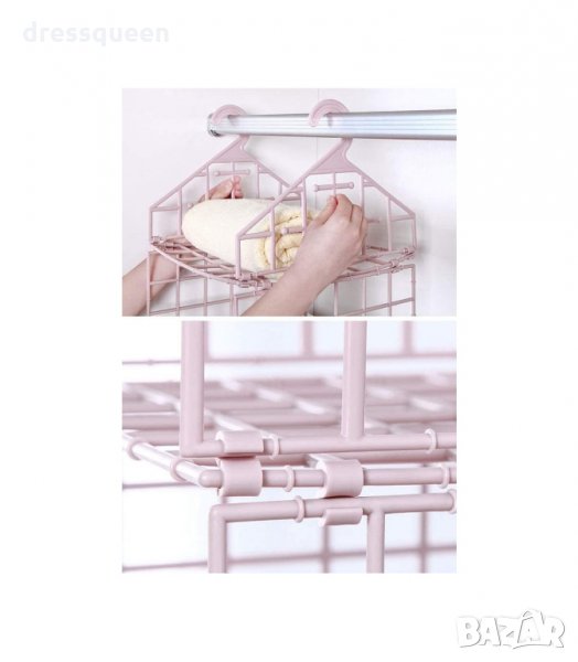 Сгъваема и гъвкава система с 2 куки за закачане на тръбата в гардероба, килера, подвижен гардероб или на всяко друго място с възможност за окачване. Рафт за дрехи. Сгъваем органайзер за гардероб с отделения за съхранение на дрехи и аксесоари.