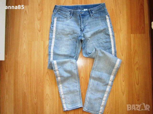 Лот 146/152см. Светло сини слим дънки "Н&M". Дължина 84см; талия 35 до 42 см.едностранно. Блузка, дължина 55см; ширина 47см. Без забележки. Цена за лота 15 лв.