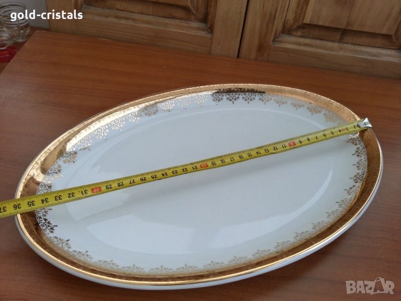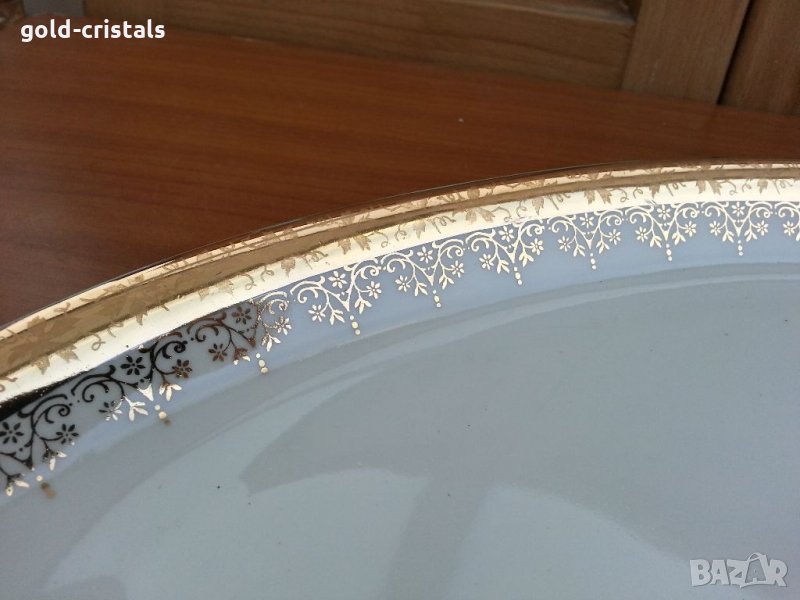 Порцеланов сервиз за хранене Чехословакия широк златен кант неупотребяван супник сосиера солница купа плато голямо елипса плато кръгло 30см 6бр чинии основно 6бр чинии дълбоки