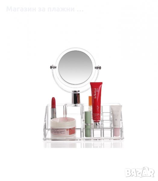 Прозрачен козметичен органайзер с огледало