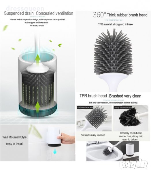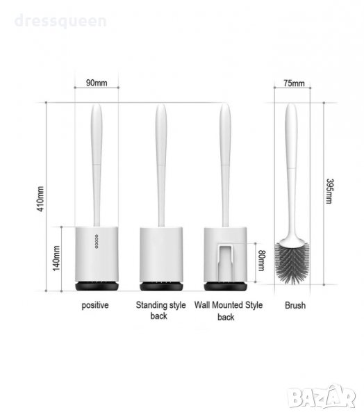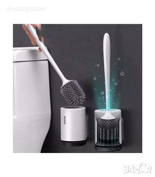 Силиконова четка с поставка за тоалетна чиния - за стена и за под