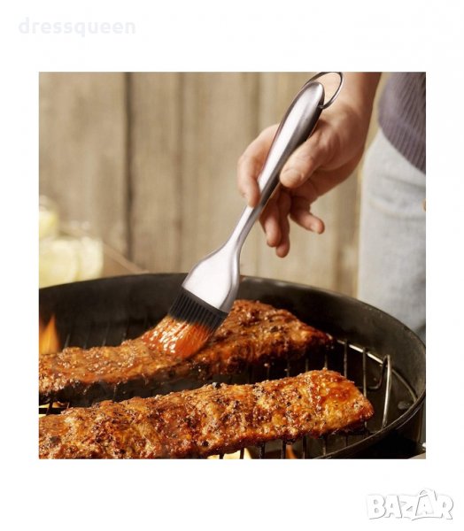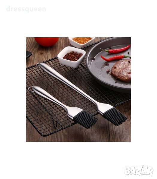 Силиконова четка за мазане с дръжка от неръждаема стомана и подвижна глава - идеална за намазване на масла и сосове върху месо на гореща скара или за намазване на тестени изделия, сладкиши и бисквити.