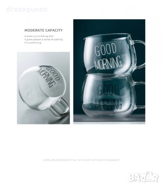 Луксозна чаша от боросиликатно стъкло с красив надпис Good Morning