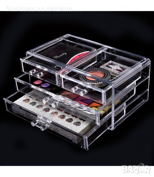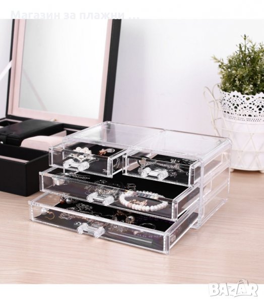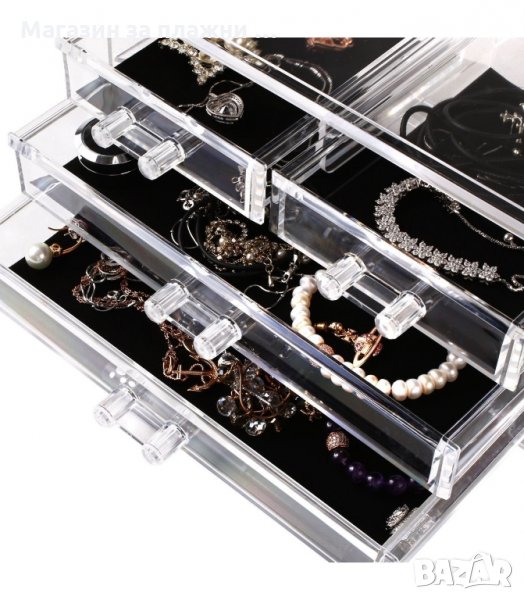 Настолен органайзер за бижута с чекмеджета от прозрачен акрил