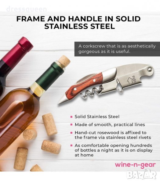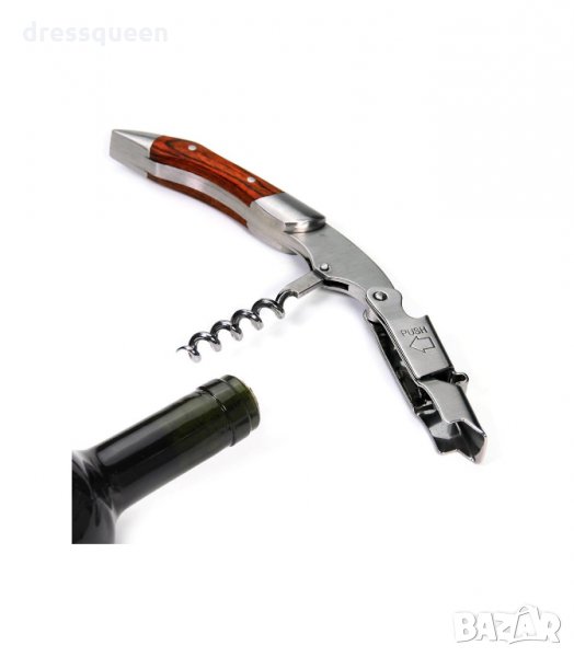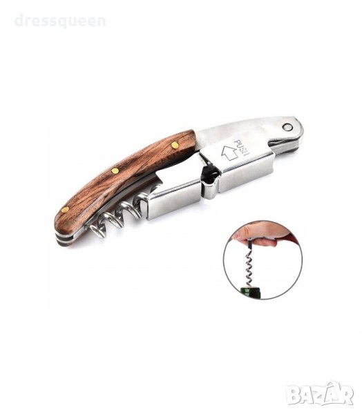 Тирбушон с двоен лост и дървена дръжка