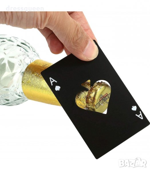 Отварачката за бира, която имитира карта за игра – асак пика, е страхотна изненада за приятел, с който цъкаш карти. Издръжливото ѝ тяло, изработено от здрава неръждаема стомана, заема формата на карта за игра с размер 5.5 х 0.2 х 8.5см., което прави тази отварачка удобна за пренасяне в портфейла и използване навсякъде, където ходиш.