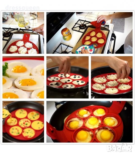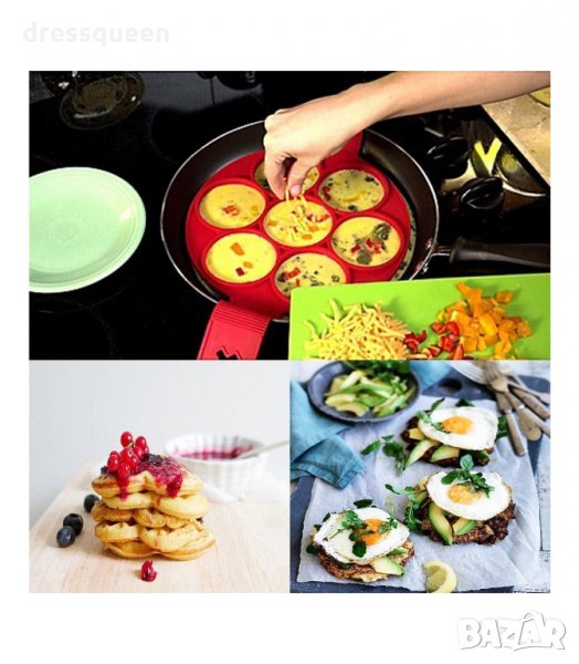 Силиконова форма за яйца и палачинки, Ф23 см. със 7 разделения