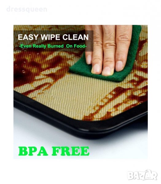 Устойчив, незалепващ и безопасен материал - изработени от 100% безопасен за здравето фибростъклен плат с покритие от термо-устойчив силикон за печене. Специален, незалепващ силикон предназначен за използване с храни. Подложката може да бъде използвана при температури от -40 до 230 градуса по целзий.