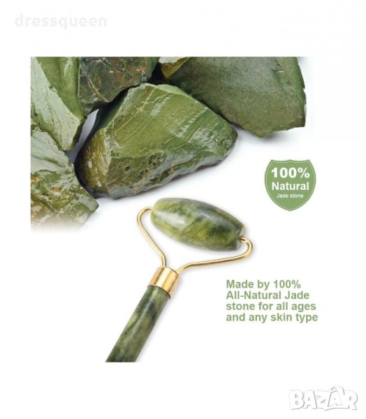Нефритът от векове се оформя като инструменти за кожата. Инструментът Jade Roller е издълбани от нефрит и се използва за повишаване на жизнеността и разкрасяване на външния вид на кожата. Чрез уникални движения, свързани с тези инструменти, можем да успокоим кожата, да намалим появата на подпухналост, да тонизирате външния вид на кожата и да облекчим появата на стареене. Тези ефекти, съчетани с лечебните свойства на нефритения камък, могат да доведат до по-ясен, стегнат, по-гладък тен. Това са красиви, луксозни инструменти, които ни карат да се чувстваме по-добре и да изглеждаме по-млади, а кой не би искал това Отделно, към комплекта вие получавате специален нефритен камък с неправилна форма. С този плосък камък можете да си правите масаж, като извивките му следват контурите на лицето и по този начин постигате пилинг ефект.