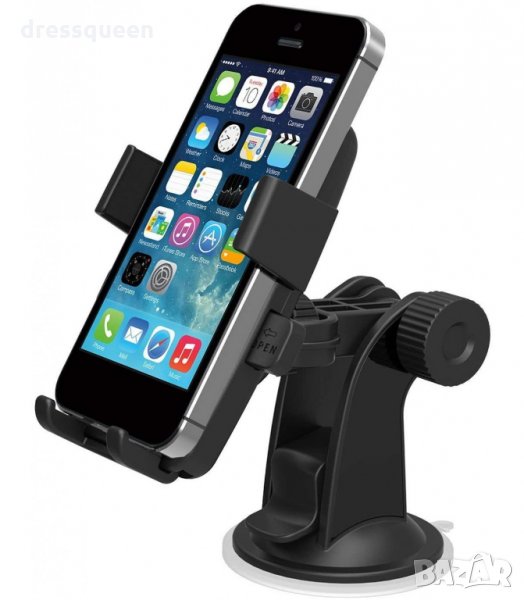 Универсална стойка с дълго гъвкаво рамо, за автомобил, подхояща за всички видове мобилни телефони, смарфони, GPS, PDА, плеъри , захващане към стъклото на автомобила с мощен вакуумВакуум вендуза със заключващ механизъм.