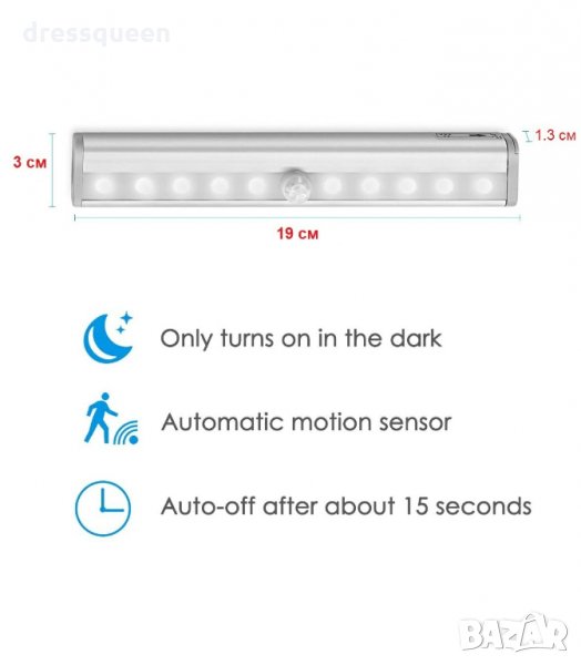 Размер на лампа с 10 LED : 19 Х 1.5 Х 3 см.