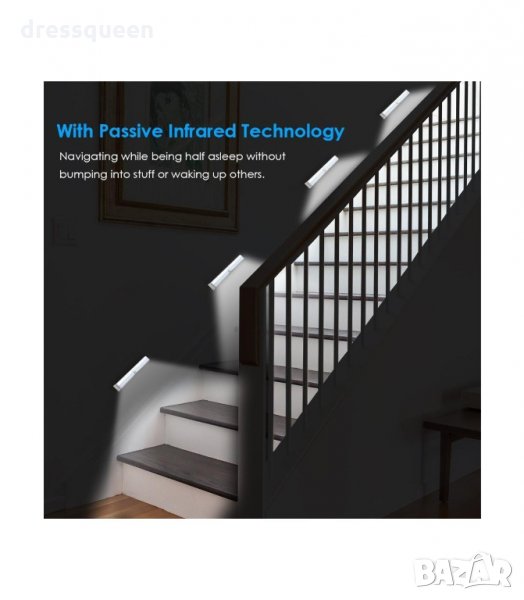 Тази осветителна система пази сама батериите си от изтощаване. Тя има вграден сензор за движение, благодарение на който осветената стая ще Ви чака 5 метра преди да влезете в нея.