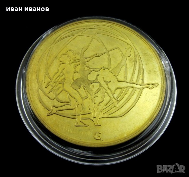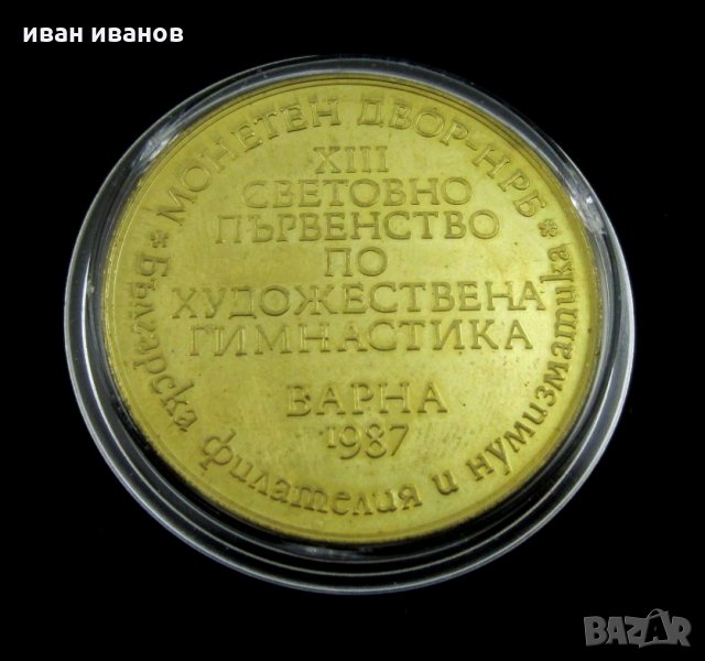 Плакет на Монетния двор посветен на 3-то Световно първенство по худ.гимнастика през 1987г във Варна.