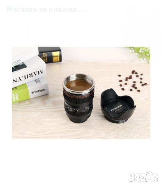 Доставете истинско удоволствие на себе си с пиенето на сутрешното кафе от термо чаша обектив Canon. Дори една оригинална термос чаша е достатъчна, за да подобри настроението Ви с различния си уникален дизайн. Термос чашата е реалистична и наподобява истински обектив Canon EF-S 17-55 mm. Изработката е наистина впечатляваща!