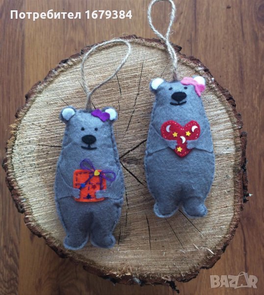Коледна декорация / Коледни играчки за елха от филц ръчна изработка мече → Обява 34270400