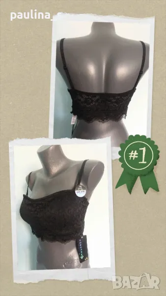1️⃣ . Колаж / L / XL - Черен дантелен сутиен модел корсет (бюстие) с изваждащи се подплънки - цена 24,99лв / 12,5 евро. Дантелата е еластична, презрамките също, затова покрива няколко размера. Нов.