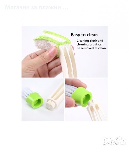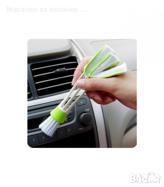 От единия си край е с три отделни накрайника, покрити с микрофибърно покритие, а от другата страна е с четка с косми Можете да използвате тази четка за кола и за почистване на компютърна клавиатура, ленти, щори и др. С тази четка за кола и дом със сигурност ще почистите навсякъде бързо и лесно! Идеален инструмент за всеки дом или кола! Материал: пластмаса Размери: 16.5 x 4cm