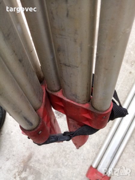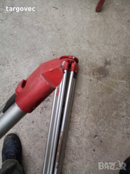Тринога за нивелир или тотална станция лайка или лейка единия крак е отчупен от пластмасовата панта в горния му край главата и двата крака със здраве всички функции на триногата работят може да се подменя ако имате счупена така цената важи за лично предаване